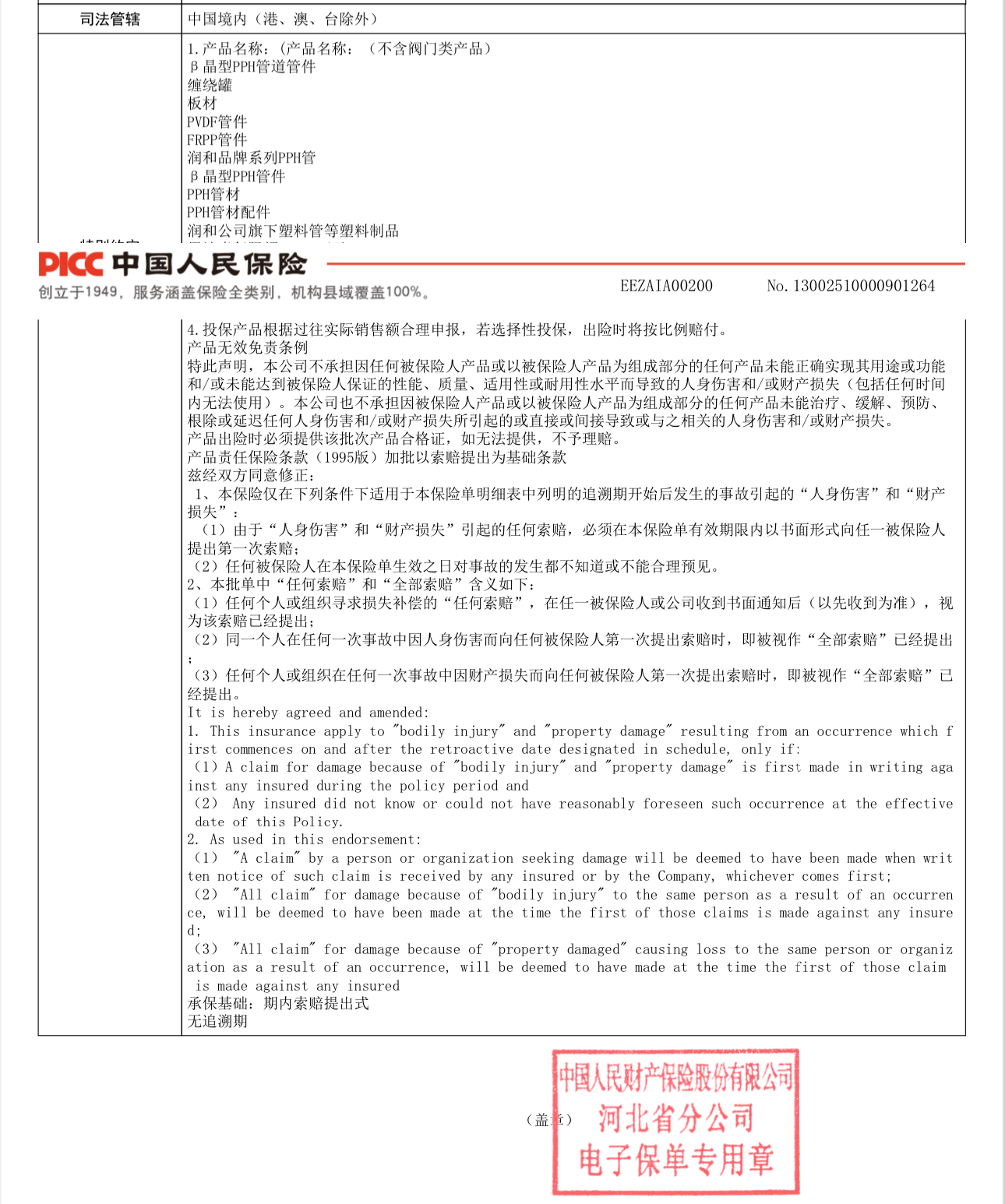 江苏钱柜qg777β晶型PPH管阀件由中国人民保险承保,企业官方披露的保险合同或认证文件为准。