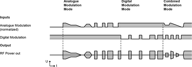 • 模式3:纯模拟模式、射频完全由ANALOG控制,ANALOG电压为射频包络线。