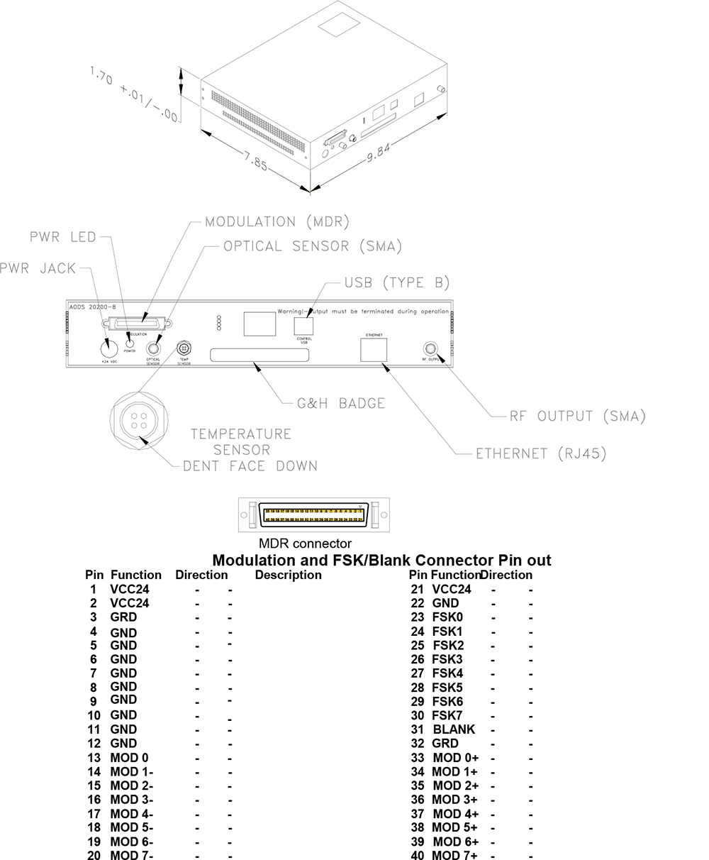 64020-200-2ADMDFS-A 偏转器、调制器、可调滤波器20-200MHz2.0W可编程频率;单通道DDS 、模拟和数字调制