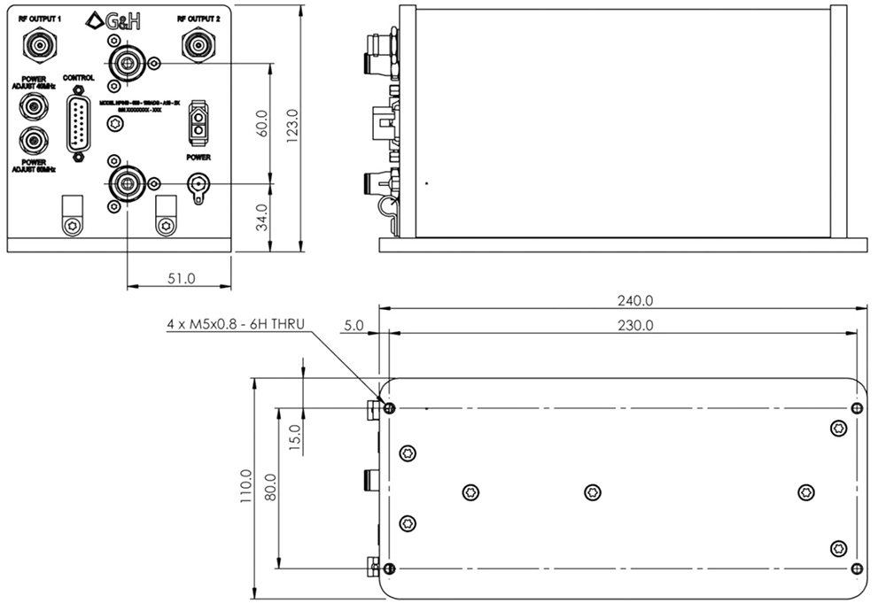 型号例子:SQDR041-20DC-FPS-15V,41MHz OEM型射频电源,输出20W,数字调制输入,带首脉冲抑止,要求输入直流电源15V。